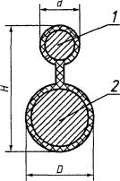 D - диаметр кабеля; d - диаметр изолированного троса; Н - высота кабеля; 1 - трос; 2 - сердечник Рисунок Таблица 9