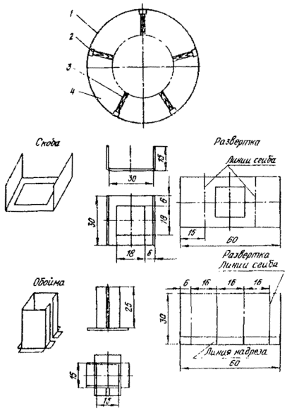 1 - металлическая лента размерами 1,5х30 мм; 2 - держатель; 3 - деревянная стойка размерами 15х15 мм; 4 – крепление ленты Приложение 2рекомендуемое