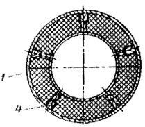 1 - правый полуфутляр с теплоизоляционным слоем; 2 - левый полуфутляр с теплоизоляционным слоем; 3 – уплотнительный слой (резина); 4 - герметик