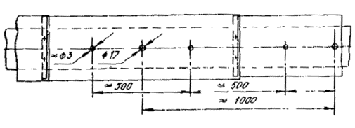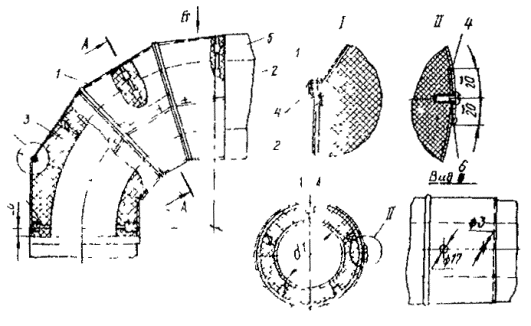 1.3. При изоляции оборудования и трубопроводов в условиях монтажа в качестве заливочного пенопласта следует использовать жесткий пенополиуретан марки ППУ-331, марки ППУ-331, получаемый на основе компонента А2-331М по ТУ 6-05-221-800-85, разработанного Всесоюзным научно-исследовательским институтом синтетических смол. 1.4. Жесткий заливочный пенополиуретан марки ППУ-331 предназначен для изоляции оборудования и трубопроводов надземной прокладки с рабочими температурами изолируемой поверхности от -180 до +100 °С и расположенных в любых климатических зонах. 1.5. Нормы регламентируют изготовление тепловой изоляции из заливочного пенополиуретана в условиях монтажа при температуре окружающей среды от +30 до 0 °С. 1.6. Область применения инструкции должна соответствовать требованиям СН 542-81 и СН 527-80. 2. КОНСТРУКЦИИ ТЕПЛОВОЙ ИЗОЛЯЦИИ ИЗ ЗАЛИВОЧНЫХ ПЕНОПОЛИУРЕТАНОВ2.1. Конструкция низкотемпературной тепловой изоляции трубопроводов и оборудования, наносимой способом заливки пенополиуретанов под защитное покрытие в условиях монтажа, состоит из следующих элементов: основного теплоизоляционного слоя из пенополиуретана; защитного покрытия из металлических листов; армирующих крепежных деталей из дистанционных кольцевых опор, уплотнителей швов защитного покрытия (герметиков), самонарезающих винтов или комбинированных заклепок. 2.2. Толщина теплоизоляционного слоя из пенополиуретана ППУ-331, заливаемого под защитное покрытие, должна быть не менее 30 и не более 250 мм. 2.3. Для изготовления защитного покрытия следует применять готовые элементы из оцинкованных листов, толщина которых должна составлять: при диаметре трубопровода до 325 мм и толщине слоя из пенополиуретана до 125 мм - 0,5 мм; при диаметре трубопроводов и оборудования 325-1500 мм или толщине изоляции свыше 120 мм - 0,7-0,8 мм; при диаметре изолируемого оборудования свыше 1500 мм - 1,0 мм. 2.4. Элементы защитного покрытия должны укладываться на стыках внахлест не менее чем на 40 мм. 2.5. Закрепление элементов защитного покрытия трубопроводов диаметром менее 600 мм следует производить по продольному шву самонарезающими винтами или алюминиевыми комбинированными заклепками с шагом около 100 мм. При диаметре трубопроводов более 600 мм и на аппаратах закрепление производится по продольному и поперечному швам. 2.6. Поперечный и продольный стыки защитного покрытия необходимо герметизировать. Наложение герметика должно производиться на кромки элементов защитного покрытия перед их установкой на дистанционных опорах. Для устранения дефектов герметизации при установке защитного покрытия допускается нанесение герметика с наружной стороны установленного покрытия. 2.7. Дистанционные опоры (рекомендуемое приложение 1) как правило должны состоять из металлической ленты шириной 30 мм, вырезаемой из оцинкованной стали толщиной 1,5 мм, и деревянных стоек площадью сечения 15´15 мм, закрепляемых на металлической ленте специальными держателями. Допускается закрепление на металлической ленте деревянных стоек сечением до 20´40 мм с помощью 1-2 гвоздей марок: П 1,6´25; П 1,8´32 (ГОСТ 4034-63). 2.8. Держатели деревянных стоек на металлической ленте должны состоять из обоймы и скобы (см. рекомендуемое приложение 1). Обойма держателей изготавливается из оцинкованной стали толщиной 0,5 мм, а скоба - из стали толщиной 0,35 мм. 2.9. Длина деревянных стоек должна бы