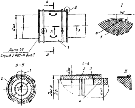 Тип I: 1 - правый и левый полуфутляры; 2 - теплоизоляционный слой; 3 - элемент покрытия; 4 - дистанционная опора; 5 - винт 4х12.46.019 (ГОСТ 10621-80)