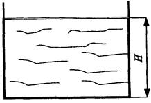 Рис. 1.1. Определение высоты продукта для расчета времени выброса 1.2.9. При пожаре в резервуаре возможно образование "карманов", которые значительно усложняют процесс тушения. "Карманы" могут иметь различную форму и площадь и образуются как на стадии возникновения в результате перекоса понтона, плавающей крыши, частичного обрушения крыши, так и в процессе развития пожара при деформации стенок. 1.2.10. Устойчивость горящего резервуара зависит от организации действий по его охлаждению. При отсутствии охлаждения горящего резервуара в течение 5-15 мин стенка резервуара деформируется до уровня взлива горючей жидкости. 2.1. Огнетушащее действие пены2.1.1. Основным средством тушения нефти и нефтепродуктов в резервуарных парках является воздушно-механическая пена средней и низкой кратности. Огнетушащее действие воздушно-механической пены заключается в изоляции поверхности горючего от факела пламени, снижении вследствие этого скорости испарения жидкости и сокращении количества горючих паров, поступающих в зону горения, а также в охлаждении горящей жидкости. Роль каждого из этих факторов в процессе тушения изменяется в зависимости от свойств горящей жидкости, качества пены и способа ее подачи. 2.1.2. При подаче пены одновременно происходит разрушение пены от факела пламени и нагретой поверхности горючего. Накапливающийся слой пены экранирует часть поверхности горючего от лучистого теплового потока пламени, уменьшает количество паров, поступающих в зону горения, снижает интенсивность горения. Одновременно выделяющийся из пены раствор пенообразователя охлаждает горючее. Кроме того, в процессе тушения в объеме горючего происходит конвективный тепломассообмен, в результате которого температура жидкости выравнивается по всему объему, за исключением "карманов", в которых тепломассообмен происходит независимо от основной массы жидкости. Для современных резервуаров типа РВС выравнивание температуры по всему объему горящей жидкости при нормативной интенсивности подачи раствора пенообразователя происходит в течение 15 мин тушения при подаче пены сверху и в течение 10 мин при подаче под слой горючего. Это время необходимо принимать в качестве расчетного при определении запаса пенообразователя для тушения нефти и нефтепродуктов воздушно-механической пеной. Нормативный запас пенообразователя согласно СНиП 2.11.03-93 следует принимать из условия обеспечения трехкратного расхода раствора пенообразователя на один пожар. Дальность растекания пены средней кратности по поверхности горючей жидкости обычно не превышает 25 м. 2.1.3. При подаче пены в нижний пояс резервуара, непосредственно в слой горючей жидкости (подслойный способ тушения пожара), используются пены низкой кратности, которые получают из фторсодержащих пленкообразующих пенообразователей. Применение фторсодержащих пенообразователей является необходимым условием, поскольку пена на их основе инертна к воздействию углеводородов в процессе длительного подъема пены на поверхность нефтепродукта. Применение пены, получаемой на основе обычных пенообразователей для подачи под слой горючей жидкости, недопустимо, так как при прохождении через слой горючей жидкости она насыщается парами углеводородов и теряет огнетушащую способность. Быстрой изоляции горящей поверхности пеной 