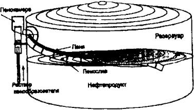 Рис. 2. Принципиальная схема подачи пены низкой кратности при тушении пожара в резервуаре подслойным методом