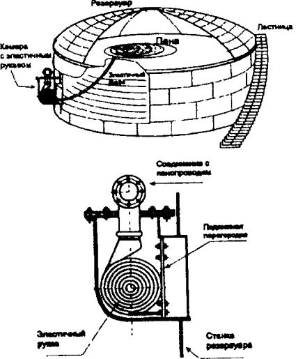 Рис. 3. Стационарная установка пожаротушения с подачей пены в основание резервуара через эластичный рукав на поверхность продукта