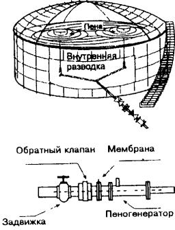 Рис. 4. Стационарная установка пожаротушения с подачей пены низкой кратности в слой горючей жидкости (подслойный способ тушения пожара)