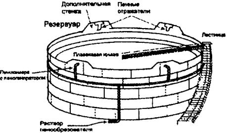 Рис. 8. Расположение пеногенерирующей аппаратуры на плавающей крыше