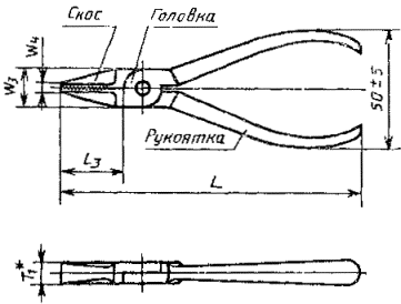 Дата введения 01.01.95 Настоящий стандарт распространяется на плоскогубцы, предназначенные для захвата и манипулирования. Стандарт не распространяется на плоскогубцы, изготовляемые из материалов, предназначенных для работы во взрывоопасных условиях. Требования настоящего стандарта являются обязательными (кроме разд. 3). Стандарт пригоден для целей сертификации на безопасность по пп. 4.7 - 4.9. 1. ТИПЫ И ОСНОВНЫЕ РАЗМЕРЫ1.1. Плоскогубцы должны изготовляться типов: 1 - с короткими губками; 2 - с длинными губками. Плоскогубцы должны изготовляться без изолирующих или с изолирующими рукоятками в соответствии с ГОСТ 11516. 1.2. Основные размеры плоскогубцев должны соответствовать указанным на черт. 1 и в табл. 1. * Размер Т1 выдерживается на длине L3. Черт. 1 Примечания. 1. Черт. 1 не определяет конструкцию. 2. Размеры плоскогубцев даны без учета изолирующих рукояток. Таблица 1 мм