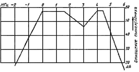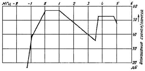 2.9. Отношение сигнала к помехе в полосе используемого телевизионного канала должно быть не менее 57 дБ. Допустимое отношение сигнала к помехе может быть уменьшено с учетом ее влияния, характеризуемого кривой защитных отношении (черт. 1-3). Отклонение частоты помехи от частоты несущей изображения