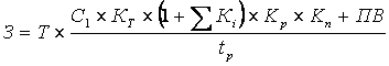 где: З - расчетная величина средств на оплату труда рабочих в текущем (прогнозном) уровне цен по объекту (части его), учитываемая в составе прямых затрат локального ресурсного сметного расчета (сметы), руб. или тыс. руб.; Т - трудоемкость работ (затраты труда рабочих-строителей и механизаторов), которая определяется по нормам, применяемым в подрядной организации, по объекту (его части), чел.-ч;