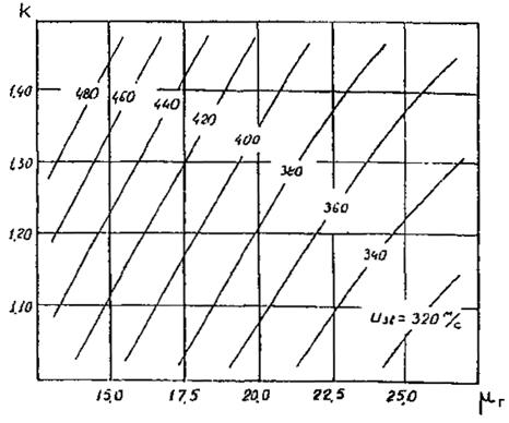 Рис. 6. Пример графического определения температуры продуктов сгорания /попутный нефтяной газ Южно-Сургутского месторождения/.