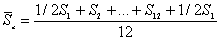 S1, S2, ..., S12 - эксплуатируемая приведенная общая площадь жилья (площадь нежилых помещений) соответственно на начало каждого месяца года; Si - эксплуатируемая приведенная общая площадь жилья (площадь нежилых помещений) на 01.01 следующего за отчетным года.
