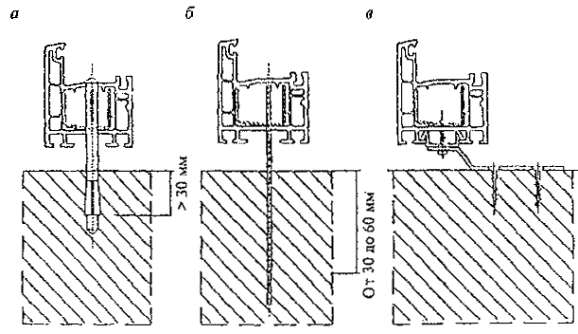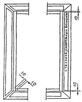Рисунок 5 - Схемы расположения опорных и дистанционных подкладок при монтаже стеклопакетов в зависимости от вида открывания оконных блоков 5.6.11 Непрозрачные заполнения полотен балконных дверных блоков (филенки) рекомендуется изготавливать из трехслойных панелей, состоящих из пластиковых или алюминиевых облицовочных листов с заполнением утеплителем. В филенках изделий, предназначенных для эксплуатации в неотапливаемых помещениях, допускается использование листовых или облицовочных материалов без утеплителя. 5.6.12 Установку филенок в дверные полотна производят в соответствии с требованиями, предъявляемыми к установке стеклопакетов. 5.6.13 Конструктивные решения узлов крепления стеклопакетов, а также панелей заполнения непрозрачной части дверного полотна, должны исключать возможность их демонтажа с наружной стороны. 5.6.14 Установку стеклопакетов (стекол), а также уплотнение притворов створок производят при помощи эластичных полимерных уплотняющих прокладок. Допускается для крепления стеклопакетов с внутренней стороны применение штапиков с коэструдированным уплотнением. 5.6.15 Уплотняющие прокладки должны быть стойкими к климатическим и атмосферным воздействиям. 5.6.16 Прилегание уплотняющих прокладок должно быть плотным, препятствующим проникновению воды. 5.6.17 Уплотняющие прокладки должны устанавливаться непрерывно по всему периметру притвора створок и стеклопакета. При кольцевой установке стык прокладок должен находиться в верхней части изделия. При установке прокладок со стыками в углах под 45° стыки прокладок следует сваривать или склеивать (кроме прокладок, устанавливаемых в штапиках). Угловые перегибы и сварные стыки уплотняющих прокладок для стеклопакетов не должны иметь выступов (выпираний), вызывающих сосредоточенные нагрузки на стеклопакеты. Допускается нарушение непрерывности установки прокладок в створчатом притворе в конструкциях, предусматривающих самовентиляцию изделий, а также в других случаях, предусмотренных конструктивными решениями и установленных в конструкторской документации. 5.7 Требования к усилительным вкладышам 5.7.1 Главные ПВХ профили изделий усиливают стальными вкладышами с антикоррозионным покрытием. 5.7.2 Форму, толщину стенок и моменты инерции усилительных вкладышей, а также максимально допустимые размеры створок при использовании конкретных типов вкладышей устанавливают в технической документации на изготовление изделий. 5.7.3 Усилительные вкладыши должны входить во внутренние камеры ПВХ профилей плотно, от руки, без помощи специальных приспособлений. 5.7.4 При использовании профилей белого цвета усилительные вкладыши допускается не устанавливать (кроме импостов) в детали изделий, длина которых менее 700 мм. При использовании цветных профилей, а также в деталях оконных блоков морозостойкого исполнения и в специальных случаях, когда это требуется согласно документации фирм-изготовителей ПВХ профилей, установка усилительных вкладышей является обязательной во всех деталях изделий. 5.7.5 Толщина стенок усилительных вкладышей должна быть не менее 1,2 мм, для усиления цветных и морозостойких профилей рекомендуется использовать усилительные вкладыши с толщиной стенок не менее 1,5 мм. 5.7.6 Расстояние от вкладыша до угла (торца) усиливаемой детали профилей должно быть в пределах 