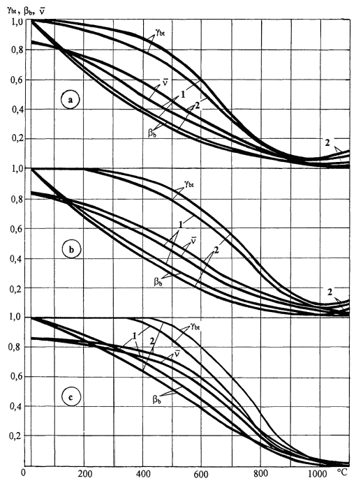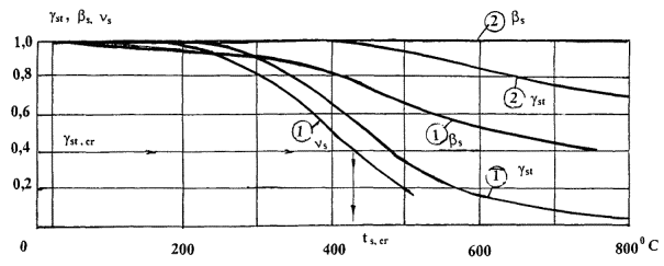 коэффициентов gbt, bb и 1 - при пожаре, 2 - после пожара. Рис. 22. Значения коэффициентов gst, bs и vs для арматуры 1 - при пожаре; 2 - после пожара.
