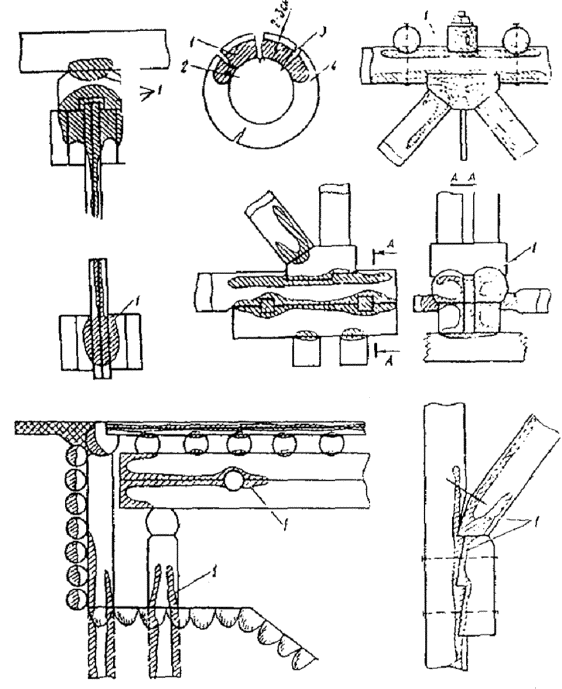 периметру; Антисептировать по методу глубокой местной пропитки под давлением препаратом ХМ-5 можно элементы, сечение которых ослаблено гнилью не более чем на 30-40 %. Сваи пойменных опор и ледорезов в уровне грунта можно защищать от зашивания антисептическими бандажами. Для этого сваю откапывают на глубину 70-80 см, тщательно очищают от земли, загнившую древесину удаляют и малярными кистями наносят слой (бандаж) антисептической пасты. Рекомендуется только битумная паста на фтористом натрии. Для этого сначала разогревают на небольшом пламени в котле нефтяной битум, а затем без огня при непрерывном помешивании добавляют зеленое масло, торфяную муку и в последнюю очередь - фтористый натрий, смоченный зеленым маслом или другим растворителем, например, керосином (керосина надо брать больше в 1,5 раза). Если нет торфяной муки или других пылеватых наполнителей, можно готовить пасту и без них, но потребуется более тонкий посев антисептика и более частое перемешивание пасты. В клееных пролетных строениях наиболее опасны трещины по клеевым швам, которые могут появиться в балках, заготовленных на заводе с нарушением технологии изготовления. В течение первого года эксплуатации необходимо не меньше четырех раз осматривать пролетные строения - зимой, весной, летом и осенью. Наиболее вероятно появление усушечных трещин в период резкого изменения температурно-влажностного режима воздуха. При глубине трещин больше 1/3 толщины элемента в зоне больших скалывающих напряжений, ее надо перекрыть накладкой на полимерном клее. Для этого поверхность балки прострагивают рубанком и наносят слой клея на поверхность и на накладку, прижатую к поверхности балки шурупами. Ширина накладки должна быть равна примерно ширине балки. Все работы по склеиванию должны производиться в сухую погоду при сухих накладках и поверхности балки. Если усушечные трещины образовались вне зоны рабочих участков, их зашпаклевывают во избежание попадания влаги в трещину. Правильная работа врубок возможна только при затянутых болтах и хомутах. Поэтому очень важно следить за состоянием таких соединений. При слабо затянутом болте такое соединение расстраивается, горизонтальная жесткость опоры уменьшается, и при возникновении горизонтальных сил опора может наклониться в ту или другую сторону. В опорах и ледорезах распорные кресты должны быть обязательно соединены со сваями скобами, иначе расстройство неизбежно. В сваях с наростами, стыкованными в полдерева, нужно следить за тем, чтобы не было зазоров как по плоскостям сплачивания, так и по плоскостям смятия. Обнаруженные зазоры надо туго заполнить прокладками. Стойки с большими усушечными трещинами, совпадающими с плоскостью стыка, надо стягивать дополнительными хомутами, чтобы при работе на горизонтальную силу стойка могла расщепиться. Необходимо также следить за состоянием подводных связей опор и ледорезов и регулярно подтягивать их тяжи. В пучинистых грунтах верхние слои грунта, смерзаясь со сваями, приподнимают их, перекашивая опоры и расстраивая врубки и сопряжения. Чтобы исключить эти последствия, грунт у опоры на глубину промерзания заменяют крупным песком и галькой, заливая их мазутом или отработавшим маслом. Такая мера дает хороший эффект на три-четыре года. В дальнейшем песок заиливается и его защитные спос