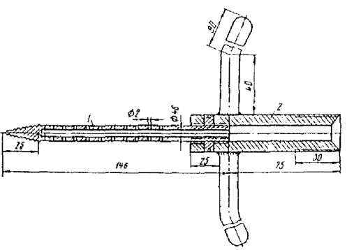 Рис. 3. Инъектор: 1 - трубка диаметром 10 мм с отверстиями по