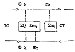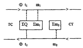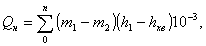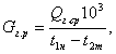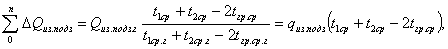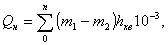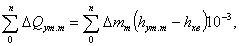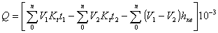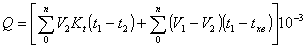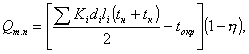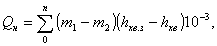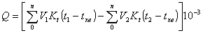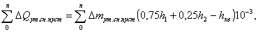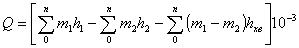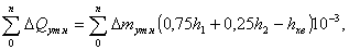 где m1 и m2 - массовый расход теплоносителя в подающем и обратном трубопроводах, т/ч; h1, h2 и hхв - энтальпия (удельное теплосодержание) теплоносителя в подающем и обратном трубопроводах, а также исходной холодной воды, поступающей на источник тепла для подпитки тепловой сети, ккал/кг (кДж/кг); n - продолжительность расчетного периода, ч, или