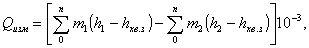 В этой формуле значения m1, h1 и h2 определяются теплосчетчиком, m2 - водосчетчиком, a hхв принимается как среднее значение по результатам измерений на источнике тепла; 2) при
