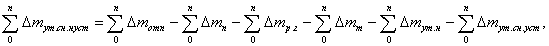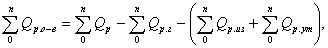 где V - емкость трубопроводов тепловой сети теплоснабжающей организации, а также тепловой сети и систем теплопотребления абонентов, м3; r - плотность теплоносителя (сетевой воды), кг/м3. Значение плотности теплоносителя следует принимать в соответствии со средней за расчетный период температурой теплоносителя в подающем и обратном трубопроводах тепловой сети (системах теплопотребления). 38 Потери теплоносителя технологические, а также вследствие установленной сверхнормативной утечки за расчетный период определяются по соответствующим нормативам, а также актам, оформленным в связи с этими потерями. 39. Суммарные потери теплоносителя, связанные с неустановленной сверхнормативной утечкой из вышеперечисленных элементов системы теплоснабжения без непосредственного водоразбора, определяются из водного баланса системы теплоснабжения: