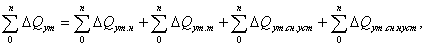 где Vэл - емкость элемента системы теплоснабжения (тепловой сети или систем теплопотребления абонентов), м3. Определение потерь тепловой энергии, обусловленных потерями теплоносителя 43. Тепловые потери за расчетный период, связанные с потерями теплоносителя в тепловой сети теплоснабжающей организации или на участках тепловой сети, находящихся на балансе абонентов, системы теплопотребления которых оснащены узлами учета, но приборы учета размещены не на границе балансовой принадлежности, а также на участках тепловой сети, находящихся на балансе абонентов, системы теплопотребления которых не оснащены приборами учета, определяются по формуле: где DQут.в - потери тепловой энергии, обусловленные нормативной утечкой теплоносителя в тепловой сети теплоснабжающей организации или на участках тепловой сети, находящихся на балансе абонентов, где замерить потери теплоносителя не представляется возможным, Гкал (ГДж), DQут.т - тепловые потери, связанные с технологическими утечками теплоносителя в тепловой сети теплоснабжающей организации или на участках тепловой сети, находящихся на балансе абонентов, где замерить потери теплоносителя не представляется возможным, Гкал (ГДж); DQут.сн.уст - потери тепловой энергии, связанные с оформленными актами потерями теплоносителя в результате установленной сверхнормативной утечки в тепловой сети теплоснабжающей организации и на участках тепловой сети абонентов, где замерить потери теплоносителя не представляется возможным, Гкал (Гдж); DQут.сн.нуст - потери тепловой энергии вследствие потерь теплоносителя, связанных с неустановленной сверхнормативной утечкой в тепловой сети теплоснабжающей организации и на участках тепловой сети абонентов, где замерить потери теплоносителя не представляется возможным, Гкал (Гдж). 44. Потери тепловой энергии, Гкал (ГДж), обусловленные потерями теплоносителя, составляющими формулу (16б), определяются формулами: