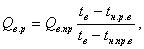 где Qв.р - расчетная часовая тепловая нагрузка приточной вентиляции, Гкал/ч (Гдж/ч); Qв.пр - расчетная часовая тепловая нагрузка приточной вентиляции по проекту, Гкал/ч (Гдж/ч); tн.пр.в - расчетная температура наружного воздуха, при которой определена тепловая нагрузка приточной вентиляции в проекте, °C; tн.р.в. - расчетная температура наружного воздуха для проектирования приточной вентиляции в местности, где расположено здание, °С; принимается по указаниям СНиП 2.04.05-91 [6]. 2.2. При отсутствии проектов или несоответствии установленного оборудования проекту расчетная часовая тепловая нагрузка приточной вентиляции должна быть определена по характеристикам оборудования, установленного в действительности, в соответствии с общей формулой, описывающей теплоотдачу калориферных установок: