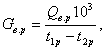 где gот.р - расчетный удельный расход теплоносителя на отопление т/Гкал (т/ГДж); Qот.р - расчетный тепловой поток на отопление, Гкал/ч (Гдж/ч); В свою очередь, расчетный удельный расход теплоносителя на отопление определяется в зависимости от расчетного перепада (разности) температуры в подающем и обратном трубопроводах тепловой сети на тепловом пункте потребителя тепловой энергии по формуле: