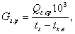 где k - коэффициент теплопередачи нагревательного прибора, ккал/ м2ч°С (кДж/м2ч°С); F - площадь поверхности теплообмена нагревательного прибора, м2; Dt - температурный напор нагревательного прибора,°С, определяемый как разность средней температуры нагревательного прибора конвективно-излучающего действия и температуры воздуха в отапливаемом здании -