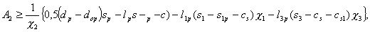Здесь площади А1 и А3 определяются без учета прибавок с, сs и расчетных толщин стенок штуцера s1p и сосуда sp. Расчетные длины штуцера, учитываемые при определении площадей А1 и А3 определяются следующим образом: l1p - по формуле (17), l3p - по формуле (18). 3.2.3. Расчет укрепления отверстия с помощью накладного кольца при необходимости определения площади этого кольца проводится по формуле