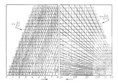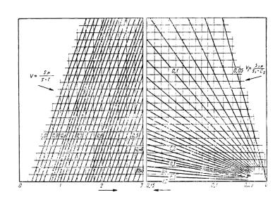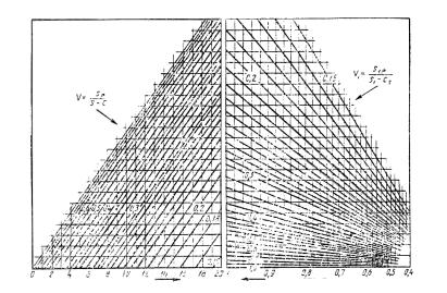 где V и V1 определяются по номограммам черт. 1-3 и табл. 2. При расчете по номограммам должны быть выполнены условия