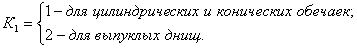 Для сферических обечаек и выпуклых днищ К1=2; К2=1,68. Для цилиндрических и конических обечаек К1=2; К2=1. Все исходные данные определяются по соответствующим пунктам настоящего стандарта.