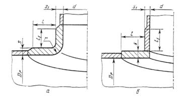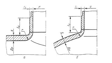 В случае отбортовки (черт. 7), а также при отсутствии торообразной вставки или вварного кольца