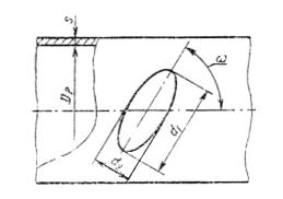 Расчетный диаметр овального отверстия для перпендикулярно расположенного штуцера к поверхности обечайки определяют по формуле