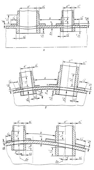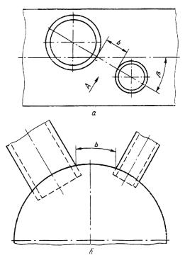ограничения не распространяются на тангенциальные штуцера (черт. 9в), на наклонные штуцера, ось которых лежит в