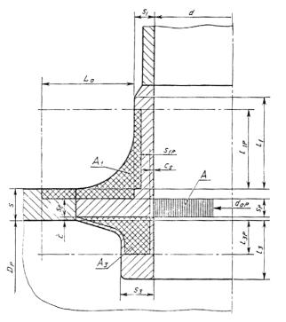Основная расчетная схема соединения штуцера со стенкой сосуда