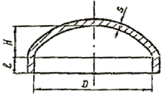 где j может принимать значения jd, jc, jw в зависимости от фактора, вызывающего ослабление; для цилиндрических элементов m1 = 2, m2 = 1; для сферических элементов m1 = 4, m2 = 1; для эллиптических днищ m2 = 4, m2 = D/2H и отношение H/D (рис. 6.1) должно удовлетворять условию 0,2 £ H/D £ 0,5. (6.2) Формулы применимы при (S - C)/D £ 0,1 для сферических, эллиптических и торосферических оболочек и при (S - C)/D £ 0,3 для цилиндрических. 6.2.3. Принимаемая номинальная толщина стенки должна удовлетворять условию S ³ SR + C. (6.3) 6.2.4. При выборе толщины листа или другого полуфабриката для изготовления СЗО конструкторская организация совместно с предприятием-изготовителем должна предусмотреть соответствующие технологические припуски для компенсации утонений при изготовлении, чтобы обеспечить толщину стенки элемента не менее расчетной с учетом прибавки С, и привести требуемую толщину заготовки в техническом проекте с последующим ее уточнением в рабочей документации.