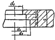 Если при расчете получают, что jd ³ 1, следует принять jd = 1. 4. Диаметр отверстий d в расчетах принимается: для круглых отверстий под развальцовку труб, под приварку штуцеров к оболочке и для отверстий, закрытых крышками, - равным диаметру отверстия в оболочках; для некруглых отверстий с отношением размеров по осям симметрии не более 2:1 - равным наибольшему размеру в свету в продольном направлении для отверстий в цилиндрических оболочках и равным наибольшему размеру в свету в каждом направлении для сферических оболочек и днищ; для круглых отверстий с пропущенным штуцером, соединенным с оболочкой сварным швом с полным проплавлением стенки, - равным внутреннему диаметру штуцера; для отверстий с разными диаметрами по толщине стенки - равным условному диаметру, определяемому по формуле