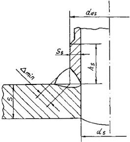 14. Номинальная толщина стенки штуцера должна быть не более номинальной толщины стенки оболочки (днища). 15. Размеры сварных швов штуцеров должны удовлетворять условию