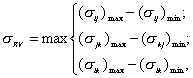 где Fш - усилие в болтах (шпильках) от механических нагрузок; z - число болтов (шпилек); [s] - допускаемое напряжение для болтов и шпилек. 7. ПОВЕРОЧНЫЙ РАСЧЕТ7.1. Общие положения7.1.1. Поверочный расчет проводят после выбора основных размеров рассчитываемых элементов. 7.1.2. При поверочном расчете используют номинальные размеры деталей и сборочных единиц. 7.1.3. Поверочный расчет проводят с учетом всех расчетных нагрузок и всех расчетных режимов эксплуатации. В один расчетный режим может быть включена группа режимов, если внешние нагрузки и температуры этих режимов не отличаются более чем на 5 % принятых при расчете значений. 7.1.4. Основными расчетными нагрузками являются: внутреннее или наружное давление; собственный вес СЗО; усилия от реакции опор и трубопроводов; температурные воздействия; дополнительные нагрузки от масс, присоединенных к СЗО. 7.1.5. Основными расчетными режимами являются: затяг болтов и шпилек; стационарный режим работы СЗО; переменные режимы, связанные с изменением состояния оборудования, заключенного в СЗО; режим работы СЗО при ПА; пневмоиспытания; динамические воздействия. 7.1.6. Настоящими нормами не регламентируются методы определения перемещений, напряжений и деформаций рассчитываемых элементов. Ответственность за выбор того или иного метода несет организация, выполнявшая расчет на прочность. 7.1.7. Приведенные напряжения при поверочном расчете определяют по теории наибольших касательных напряжений. Исключением является расчет на сопротивление хрупкому разрушению, при котором приведенные напряжения определяют по теории наибольших нормальных напряжений. 7.2. Расчет на статическую прочность7.2.1. Порядок определения напряжений. 1. На основании предварительного анализа геометрической формы, условий закрепления, действующих нагрузок и температурных полей следует выбрать наиболее напряженные области рассчитываемой оболочки. 2. Для определения составляющих напряжений в рассчитываемых областях элемента конструкции выбирают одну из систем координат, например прямоугольную с осями х, у, z, цилиндрическую с осями q, r, z или сферическую с осями q, r, j, и фиксируют направление осей. Составляющие нормальных напряжений в соответствующих системах координат обозначают sx, sy, sz или sq, sr, sz, или sq, sr, sj, а составляющие касательных напряжений - txy, txz, tyz или tqr, tqz, trz, или tqr, tqj, trj. Для тонкостенных оболочек с S/r £ 0,2 радиальные напряжения (с индексом r) допускается не учитывать. 3. Путем упругого расчета определяют значения шести составляющих напряжений (три составляющих нормальных и три составляющих касательных напряжений) без учета концентрации для всех режимов нагружения. 4. По шести составляющим напряженного состояния определяют значения главных напряжений и условно присваивают им индексы i, j, k. 5. Получают зависимость изменения главных напряжений si; sj; sk для всей принятой последовательности режимов работы по времени. 6. Значения приведенных напряжений определяют для всех моментов времени, когда любое из главных напряжений достигает экстремального значения по формулам: (sij)l = sil - sjl; (sjk)l = sjl - skl; (7.1) (sik)l = sil - skl, l = 1, 2, …, m. 7. При поверочном расчете на статическую прочность указанные в п. 6 приведенные напряжения определяют для категории общих мембранных напряжений (s)1, расчетной группы общих и местных мембранных напряжений и общих изгибных