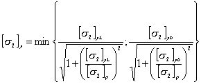 tр - ширина поперечного сечения ребра в месте его приварки к оболочке. Допускаемое напряжение из условия устойчивости участка оболочки с кольцевыми ребрами определяется как [s2]yb = [s2]y по формуле (7.8) с заменой L на длину участка, устойчивость которого проверяется. При этом значение Кp принимают: для участка между ребрами жесткости Кp = 1,1; для участка между заделкой и ребром Кp = 1,25; для участка между ребром и сопряжением оболочки со сферическим куполом Кp = 1,40b/(b + 0,33R). Допускаемое из условия прочности общее мембранное окружное напряжение определяется по формуле