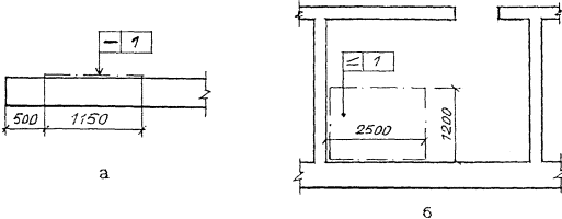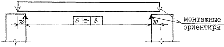 Рисунок 13 2.14. При обозначении предельных отклонений симметричности укладки элемента на опорах (выравнивание глубин опирания) рамку соединяют линиями с границами пролета элемента так, чтобы стрелки являлись продолжением размерных линий, определяющих глубину опирания элемента. При этом на торцах элемента и гранях опор указывают монтажные ориентиры, как показано на рисунке 14.