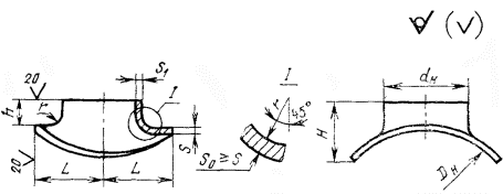 * Радиус r должен быть не менее s. Пример условного обозначения седловины Dн = 219 мм, dн = 108 мм, s = 6 mm, s1 = 4 мм из стали 20: Седловина 219×6 - 108×4 ГОСТ 17377-83. (Измененная редакция, Изм. № 1). 4. Материал - сталь 20 по ГОСТ 1050-74. 5. Технические требования - по ГОСТ 17380-83. 6. Коды ОКП приведены в справочном приложении. ПРИЛОЖЕНИЕ