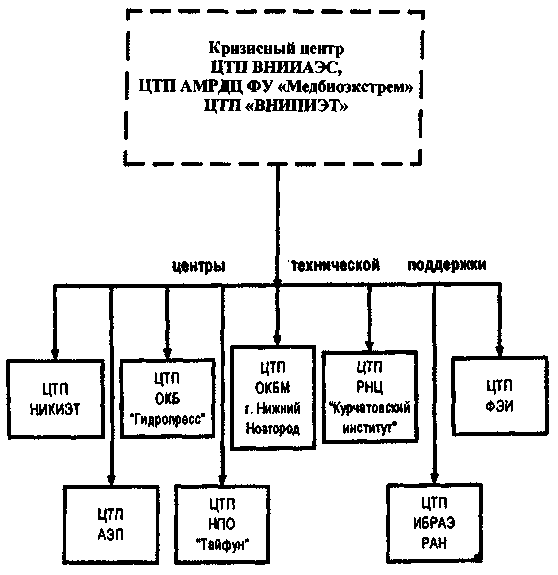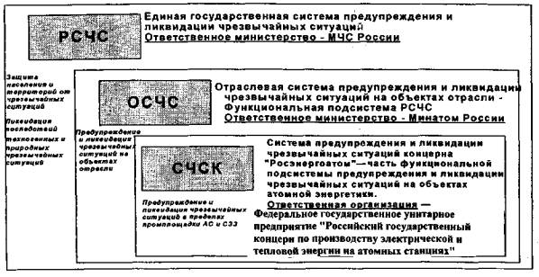 Рис. 1 ДЕЯТЕЛЬНОСТЬ КОНЦЕРНА "РОСЭНЕРГОАТОМ" ПО ПРЕДУПРЕЖДЕНИЮ И ЛИКВИДАЦИИ ЧРЕЗВЫЧАЙНЫХ СИТУАЦИЙ Рис. 2 4. ГРУППА ОКАЗАНИЯ ЭКСТРЕННОЙ ПОМОЩИ АТОМНЫМ СТАНЦИЯМ В СЛУЧАЕ РАДИАЦИОННО ОПАСНЫХ СИТУАЦИЙ ИЛИ АВАРИЙ НА АС4.1. Место группы ОПАС в системе предупреждения и ликвидации ЧС4.1.1. Экстренная помощь в случае возникновения радиационно опасных ситуаций или аварий на АС осуществляется группой ОПАС, являющейся, в свою очередь, органом, координирующим действия привлекаемых сил и средств для локализации и ликвидации аварий. 4.1.2. Общее руководство деятельностью группы ОПАС осуществляет ОКЧС Минатома России. 4.1.3. Группа ОПАС создается концерном "Росэнергоатом" по согласованию с ОКЧС Минатома России и работает при концерне "Росэнергоатом". 4.1.4. Руководитель группы ОПАС назначается приказом Министра Российской Федерации по атомной энергии по представлению ОКЧС и руководства концерна "Росэнергоатом". 4.1.5. В случае обращения к ОКЧС или МВК для выяснения причин аварии и ликвидации ее последствий группа ОПАС работает под их руководством. 4.1.6. Ответственность за поддержание группы ОПАС в постоянной готовности к выполнению своих задач возлагается на концерн "Росэнергоатом". 4.1.7. Члены группы ОПАС назначаются приказами руководства соответствующих организаций. Они имеют право на льготы и компенсации в соответствии с действующим законодательством. 4.1.8. Порядок оказания экстренной помощи АС, расположенным за пределами границ Российской Федерации, определяется отдельными межгосударственными соглашениями. 4.1.9. В состав группы ОПАС (на правах ее членов) входят представители: Федеральное государственное унитарное предприятие "Российский государственный концерн по производству электрической и тепловой энергии на атомных станциях (концерн "Росэнергоатом"), Федерального надзора России по ядерной и радиационной безопасности, Федеральной службы России по гидрометеорологии и мониторингу окружающей среды, а также Всероссийского научно-исследовательского института по эксплуатации АЭС, Федерального государственного унитарного предприятия "Научно-исследовательский и конструкторский институт энерготехники, Федерального государственного унитарного предприятия - Научно-исследовательский, проектно-конструкторский и изыскательский институт "Атомэнергопроект" Федерального государственного унитарного предприятия - Опытное конструкторское бюро "Гидропресс", Российского научного центра "Курчатовский институт", Государственного научного центра Российской Федерации - Физико-энергетический институт им. академика А.И. Лейпунского, Государственного унитарного предприятия "Опытное конструкторское бюро машиностроения им. И.И. Африкантова, г. Нижний Новгород, Научно-производственного объединения "Тайфун", Института проблем безопасного развития атомной энергетики Российской академии наук, Государственного научного центра Российской Федерации "Институт биофизики" Минздрава России, Государственного унитарного предприятия - Головной институт "Всероссийский проектный и научно-исследовательский институт комплексной энергетической технологии", Представители Министерства Российской Федерации по делам гражданской обороны, чрезвычайным ситуациям и ликвидации последствий стихийных бедствий, Министерства здравоохранения Российской Федерац