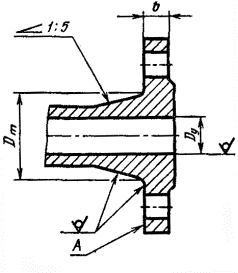 Срок действия с 01.01.83 Требования пп. 1 - 3; 5; 6 настоящего стандарта являются обязательными, остальные требования - рекомендуемыми. (Измененная редакция, Изм. № 2). 2. Конструкция и размеры фланцев должны соответствовать указанным на чертеже и в таблице. Примечание. Допускается обработка поверхностей А с шероховатостью Ra £ 100 мкм. мм