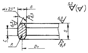 Допускается изготовление прокладок из других марок сталей, исходя из условий эксплуатации, по нормативно-технической документации, утвержденной в установленном порядке. Прокладки из высоколегированных и коррозионно-стойких сталей следует подвергать термической обработке. 2.3. Отклонения размеров прокладок: среднего диаметра ±0,18 мм для диаметров до 900 мм включительно и ±0,20 мм для диаметров более 900 мм: толщины В - ±0,2 мм; высоты S - ±0,4 мм; угла a - ±30'. Предельные отклонения размеров, не установленные настоящим стандартом, принимаются по рабочим чертежам, утвержденным в установленном порядке. 2.4. Торцевые привалочные поверхности прокладок должны быть без дефектов. 2.5. Допускается наличие на прокладке не более двух поперечных сварных швов. Разность в твердости металла сварного шва и основного металла не должна быть более 20 единиц по Бринеллю. 3. МАРКИРОВКАКаждая прокладка должна иметь четкую маркировку, нанесенную на бирке с указанием условного прохода, условного давления; марки стали и номера настоящего стандарта. Дополнительно на наружной цилиндрической поверхности прокладки электродом должно наноситься условное обозначение стандарта. ИНФОРМАЦИОННЫЕ ДАННЫЕ 1. РАЗРАБОТАН И ВНЕСЕН Министерством тяжелого машиностроения СССР 2. РАЗРАБОТЧИКИ Г.В. Мамонтов, А.Г. Вихман, С.И. Зусмановская, И.Е. Зейде, Б.С. Вольфсон, Н.П. Анисова, С.Н. Черкасова, А.М. Бубакин, Т.В. Булчинская, Т.Е. Бабкина, В.А. Заваров, В.И. Рачков, Н.С. Ананьева, Л.П. Перцев, В.В. Проголаев, В.В. Стогний, Л.П. Гапонова, Т.П. Голубова 3. УТВЕРЖДЕН И ВВЕДЕН В ДЕЙСТВИЕ Постановлением Государственного комитета СССР по управлению качеством продукции и стандартам от 29.11.90 № 2976 4. Срок проверки стандарта 1997 г. Периодичность проверки - 5 лет 5. ВЗАМЕН ОСТ 26-432-79 6. ССЫЛОЧНЫЕ НОРМАТИВНО ТЕХНИЧЕСКИЕ ДОКУМЕНТЫ