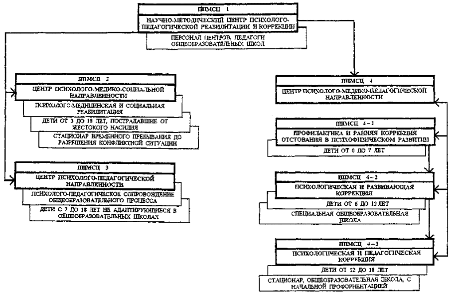 ВВЕДЕНИЕОбразовательные учреждения для детей и подростков, имеющих проблемы в обучении, социальной адаптации и нуждающихся в психолого-педагогической и медико-социальной коррекции - Психолого-педагогические и медико-социальные центры (далее ППМСЦ). ППМСЦ обеспечивают: диагностику и консультирование; психолого-медико-социальное сопровождение; психолого-педагогическую реабилитацию и коррекцию; социально-трудовую адаптацию и профориентацию; лечебную педагогику и дифференцированное обучение. 1. ОБЛАСТЬ ПРИМЕНЕНИЯ1.1. Настоящие «Рекомендации» разработаны для г. Москвы, как дополнение к нормативным документам в строительстве и распространяются на проектирование новых и реконструкцию существующих ППМСЦ. 1.2. Настоящие «Рекомендации» устанавливают основные положения и требования к размещению, участку, территории, архитектурно-планировочным решениям и инженерному оборудованию ППМСЦ. 1.3. Проектирование ППМСЦ должно вестись в соответствии с положениями настоящих «Рекомендаций», а также требованиями других нормативно-методических документов в строительстве, действующих на территории г. Москвы. 2. НОРМАТИВНЫЕ ССЫЛКИВ настоящих Рекомендациях приведены ссылки на следующие нормативно-методические документы: 2.1. СНиП 10.01-94. «Система нормативных документов в строительстве. Основные положения». 2.2. СНиП 2.08.02-89* «Общественные здания и сооружения». 2.3. СНиП 21-01-97* «Пожарная безопасность зданий и сооружений». 2.4. СНиП 2.07.01-89* «Градостроительство. Планировка и застройка городских и сельских поселений». 2.5. СНиП 23-05-95 «Естественное и искусственное освещение». 2.6. СНиП 2.04.09-84 «Пожарная автоматика зданий и сооружений». 2.7. СНиП 2.04.05-91* «Отопление, вентиляция и кондиционирование воздуха». 2.8. СП 2.4.2.782-99 «Гигиенические требования к условиям обучения школьников в различных видах современных общеобразовательных учреждений». 2.9. СН 441-72* «Указания по проектированию ограждений площадок и участков предприятий, зданий и сооружений». 2.10. МГСН 4.06-96 «Общеобразовательные учреждения». 2.11. МГСН 4.15-98 «Общеобразовательные учреждения для детей-сирот и детей, оставшихся без попечения родителей». 2.12. МГСН 1.01-99 «Нормы и правила проектирования, планировки и застройки г. Москвы». 2.13. МГСН 4.12-97 «Лечебно-профилактические учреждения». 2.14. МГСН 4.07-96 «Дошкольные учреждения». 2.15. «Пособие по проектированию учреждений здравоохранения» (к СНиП 2.08.02-89), раздел 4 «Амбулаторно-поликлинические учреждения». 2.16. «Проектирование бассейнов». Справочное пособие к СНиП 2.08.02-89*. М. Стройиздат. 1991г. 3. ОБЩИЕ ПОЛОЖЕНИЯ3.1 Основными направлениями деятельности ППМСЦ являются: - организация образовательной деятельности по общеобразовательным программам (основным и дополнительным) и начального профессионального образования в соответствии с возрастными и индивидуальными особенностями детей и подростков, состоянием их соматического и психического здоровья; - диагностика уровня психического развития и отклонений в поведении детей; - психокоррекционная и психопрофилактическая работа с детьми; - организация коррекционно-развивающего и компенсирующего обучения; - оказание помощи подросткам в профориентации и трудовой адаптации; - анонимное консультирование детей с целью снятия стресса; - оказание консультативной помощи родителям в решении проблем родительско-детских отношений; - оказа