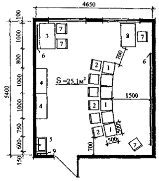 Помещения общего образования и начальной профессиональной подготовки 5.36. Проектирование помещений общего образования для подготовительных и начальных классов (ППМСЦ 4-1 и 4-2), средних и старших классов (ППМСЦ 4-3), а также мастерских начальной профессиональной подготовки (ППМСЦ 4-3) следует осуществлять в соответствии с положениями данных Рекомендаций (табл. 5.3. - 5.5.) и МГСН 4.06-96. 5.37. Помещения общего образования и начальной профессиональной подготовки помимо образовательной функции, обеспечивают также проведение занятий психо-коррекционного характера. 5.38. Наполняемость классов подготовительной группы (ППМСЦ 4-1) и начальной школы (ППМСЦ 4-2) принимаются соответственно 1 - 2 человека и 6 - 9 человек; а средней и старшей школы (ППМСЦ 4-3) - 9 человек. 5.39. В блоке общего образования и начальной профессиональной подготовки следует предусматривать рекреации из расчета 1,2 м2 на 1 место в классе. В блоках вместимостью менее 100 человек этот показатель может быть увеличен до 50%. Ширина рекреаций должна быть не менее 4 м. 5.40. Лаборантские подготовительных и начальных классов размещаются смежно с классными помещениями и оборудуются проемом с зеркалом «гезелла» для наблюдения за реакцией детей во время проведения занятий. 5.41. Естественное и искусственное освещение учебных и учебно-производственных помещений следует проектировать в соответствии с МГСН 4.06-96 и со СНиП 23-05-95. 5.42. Проектирование санитарных узлов при учебных помещениях осуществляется в соответствии с МГСН 4.06-96. 5.43. При учебно-производственных помещениях следует предусматривать кладовые для хранения материалов и готовых изделий. Учебно-производственные мастерские предусматриваются на 9 рабочих мест. Специализация, состав и площади мастерских определяются заданием на проектирование. 5.44. Производственные мастерские, в которых процесс обучения связан с выделением химических веществ и пыли (в т.ч. мастерские радиотехники, электроники, монтажные и др.), следует оборудовать эффективной вентиляционной системой согласно СНиП 2.04.05-91*. Монтажные мастерские, в которых проводится рубка и резка металла, а также мастерские и лаборатории с крупногабаритным и тяжелым оборудованием, с крупногабаритными материалоемкими объектами работ учащихся, необходимо располагать на первом этаже. Каждая мастерская оборудуется шкафами для хранения спецодежды и умывальниками с подачей горячей и холодной воды (из расчета 1 умывальник на 10 человек, но не менее 2-х умывальников на группу). 5.45. Учебно-производственные мастерские могут использоваться для досуговых занятий по интересам. 5.46. Учебно-производственные помещения включают: - помещения начального профессионального обучения детей; - помещения подготовки процесса обучения (профессионалами без участия детей в соответствии с требованиями Трудового законодательства об использовании детского груда); площадь помещений (не менее 60 м2) и их количество определяется заданием на проектирование. Рекомендуемые состав и площади помещений общего образования (подготовительные и начальные классы)