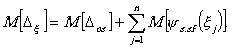 если исходные данные о влияющих величинах xj заданы в соответствии с п. 2.2.2.2, то Суммирование выполняется для п влияющих величин, для которых нормированы метрологические характеристики ys.sf(xj), j=1, 2...n СИ по п. 2.2.1 и значения которых в момент измерения отличаются от установленных для данного СИ нормальных значений. 3.1.1.1. Для линейных функций влияния ys.sf(xj)=Ks.sfj(xj-xref.j) значения M[ys.sf(xj)] вычисляются по формуле 3.1.2.1. Для вычисления M[ys.sf(xj)] нелинейной функции влияния ys.sf(xj) необходимы данные о законе распределения j(xj) влияющей величины xj Приближенные значения M[ys.sf(xj)] нелинейных функций влияния вычисляются по формуле Примечания: 1. Если для СИ нормирован предел Dosp допускаемых значений систематической составляющей основной погрешности без указания значения М[Dos] и если нет оснований предполагать несимметричность распределения указанной погрешности в пределах Dosp, то допускается для расчетов характеристик погрешности СИ пользоваться предположением М[Dos]=0. 2. Для СИ с индивидуальными метрологическими характеристиками (п. 2.2.1, примечание 1) для расчетов характеристик погрешности СИ принимается М[Dos]=0. 3. Если для j-й влияющей величины известны только ее наименьшее xнj и наибольшее xвj значения, соответствующие реальным условиям эксплуатации СИ, и нет оснований выделить области предпочтительных значений влияющей величины в границах от xнj до xвj, несимметрично расположенные относительно центра интервала, определяемого указанными границами, то допускается для расчетов характеристик погрешности СИ пользоваться предположением M[xj]=0,5(xнj+xвj). 3.1.2. Дисперсия D[Dx] статической составляющей погрешности СИ при реальных значениях влияющих величин вычисляется по формулам: если исходные данные о влияющих величинах xj заданы в соответствии с п. 2.2.2.1, то