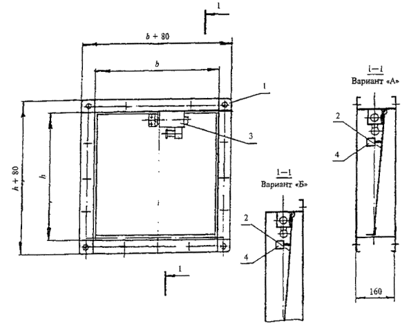Стеновой дымовой клапан 1 - механизм привода; 2 - заслонка; 3 - корпус; 4 - термовспучивающийся уплотнитель; 5 - решетка Типоразмерный ряд внутренних и установочных размеров поперечного сечения клапанов КПК-1