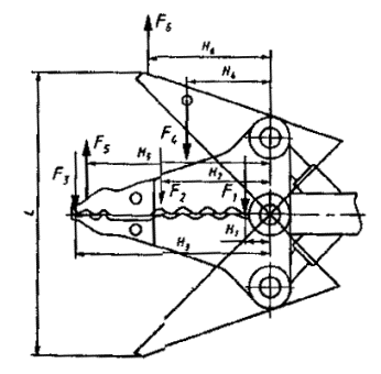 rescue tools. Combination Дата введения 1997-01-01 1. ОБЛАСТЬ ПРИМЕНЕНИЯНастоящий стандарт распространяется на ножницы комбинированные (далее - ножницы), являющиеся исполнительными гидроустройствами аварийно-спасательного переносного инструмента с гидроприводом (АПИГ), предназначенные для разрезания листового металла, перерезания арматуры из стали и тонкостенных труб, перемещения и фиксации плит, блоков, их обломков при проведении спасательных, аварийно-восстановительных работ в зонах чрезвычайных ситуаций. Настоящий стандарт применяется совместно с ГОСТ Р 50983. 2. НОРМАТИВНЫЕ ССЫЛКИВ настоящем стандарте использованы ссылки на следующие стандарты: ГОСТ 8.513-84 Проверка средств измерений. Организация и порядок проведения. ГОСТ 12.2.040-79 ССБТ. Гидроприводы объемные и системы смазочные. Общие требования безопасности и конструкции. ГОСТ 12.2.086-83 ССБТ. Гидроприводы объемные и системы смазочные. Общие требования безопасности к монтажу, испытаниям и эксплуатации. ГОСТ 33-82 Нефтепродукты. Метод определения кинематической вязкости и расчет динамической вязкости. ГОСТ 15150-69 Машины, приборы и другие технические изделия. Исполнения для различных климатических районов. Категории, условия эксплуатации, хранения и транспортирования в части воздействия климатических факторов внешней среды. ГОСТ 17216-71 Промышленная чистота. Классы чистоты жидкостей. ГОСТ 24555-81 СГИП. Порядок аттестации испытательного оборудования. Основные положения. ГОСТ Р 50983-96 Инструмент аварийно-спасательный переносной с гидроприводом. Общие технические требования. ОСТ 1 00378-87 ОСОЕИ. Порядок выбора средств измерения температуры. ОСТ 1 00379-80 ОСОЕИ. Выбор средств измерений давления для контроля параметров технологических процессов производства и проведения измерений. ОСТ 1 00380-80 ОСОЕИ. Выбор средств измерений массы, силы, ускорений для контроля технологических процессов производства и проведения измерений. ОСТ 1 00422-81 ОСОЕИ. Порядок проведения работ по метрологическому обеспечению испытательного оборудования. 3. ОПРЕДЕЛЕНИЯ3.1. В настоящем стандарте применяют следующий термин с соответствующим определением: Ножницы комбинированные: Исполнительное гидравлическое устройство АПИГ, выполняющее операции разрезания, перемещения и фиксации. 4. ОСНОВНЫЕ ПАРАМЕТРЫ И РАЗМЕРЫ4.1. В зависимости от максимальной силы резания стандарт устанавливает два типа ножниц: 1 - максимальная сила резания от 160 до 250 кН (от 16 до 25 тс); 2 - максимальная сила резания свыше 250 до 400 кН (свыше 25 до 40 тс). 4.2. Основные параметры, характеризующие типы ножниц, должны соответствовать указанным в таблице 1. 4.3. Схема приложения сил резания и разведения лезвий представлена на рисунке 1. Рисунок 1 Таблица 1