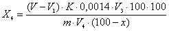 где V - объем раствора трилона Б концентрации 0,025 моль/дм3, израсходованный на титрование, см3. Раствор серно-кислого цинка концентрации 0,026 моль/дм3, готовят следующим образом: 7,2 г серно-кислого цинка растворяют в воде и доводят объем раствора водой до 1 дм3. Коэффициент соответствия раствора определяют следующим образом: 25 см3 раствора серно-кислого цинка помещают в колбу для титрования, прибавляют 70 см3 воды, 5/см3 аммиачного буферного раствора, 0,1 г индикаторной смеси эриохрома черного Т и титруют раствором трилона Б концентрации 0,025 моль/дм3 до перехода фиолетовой окраски в синюю. Коэффициент соответствия (К1) раствора серно-кислого цинка концентрации 0,025 моль/дм3 вычисляют по формуле
