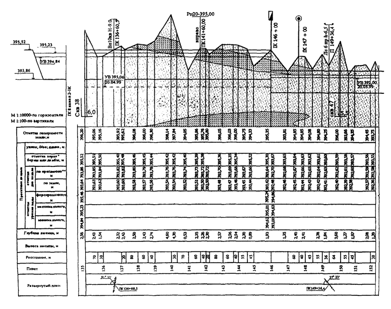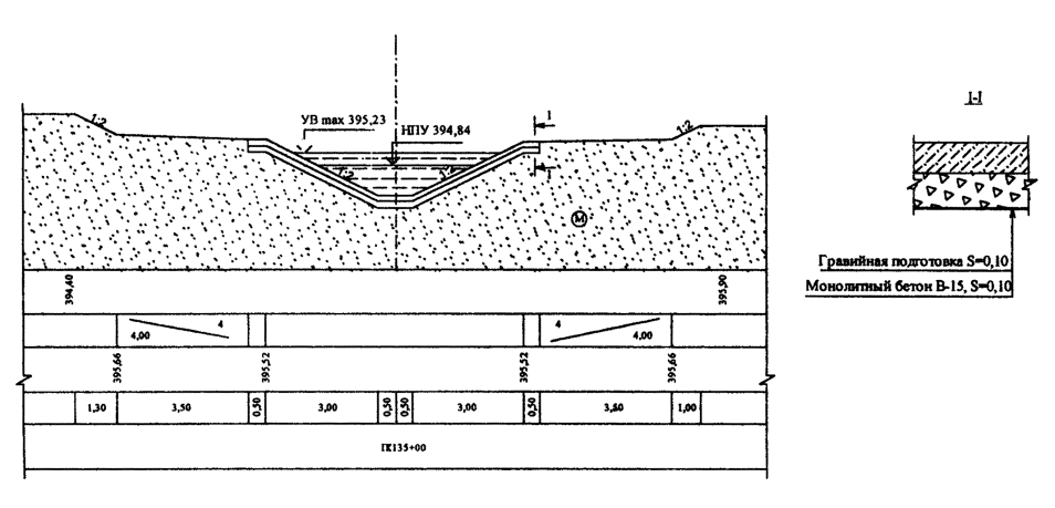 5.3. Поперечный профиль линейного сооружения 5.3.1. На поперечном профиле линейного сооружения показывают: - линию фактической поверхности земли; - контур проектируемого линейного сооружения, а при реконструкции - существующего и проектируемого; - размеры элементов сооружения; - контур и глубину срезки плодородного слоя грунта; - крутизну откосов; - конструкцию укрепления канала (схематично) с учетом требований ГОСТ 21.303 (таблица 4) и ГОСТ Р 21.1207 (таблица 4); - геологические разрезы с элементами гидрогеологии. 5.3.2. Поперечные профили выполняют с учетом данных, приведенных в таблице-сетке боковика по форме 12. Форма 12